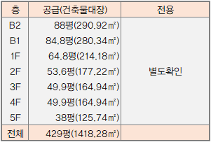 | 5층 | 사무소 | 제2종근린생활시설(사무소) | 125.74㎡ 38.04평 |