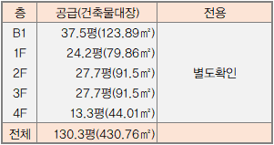 공급 430.76㎡ 130평 / 전용 430.76㎡ 130평 (전용률 100%) 평