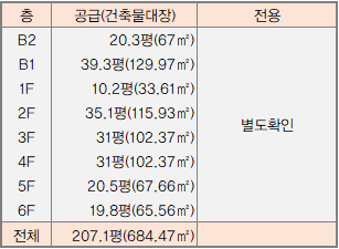공급 684.47㎡ 207평 / 전용 379.8㎡ 115평 (전용률 55%) 평