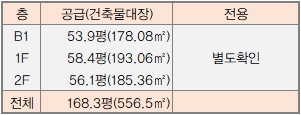 공급 556.5㎡ 168평 / 전용 556.5㎡ 168평 (전용률 100%) 평