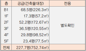 공급 752.74㎡ 228평 / 전용 595㎡ 180평 (전용률 79%) 평