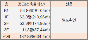 공급 604.4㎡ 183평 / 전용 604.4㎡ 183평 (전용률 100%) 평