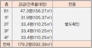 공급 592.39㎡ 179평 / 전용 592.39㎡ 179평 (전용률 100%) 평