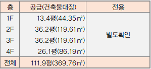 공급 369.76㎡ 112평 / 전용 369.76㎡ 112평 (전용률 100%) 평