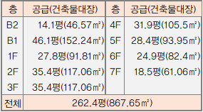 공급 867.65㎡ 262평 / 전용 867.65㎡ 262평 (전용률 100%) 평