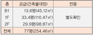 공급 254.46㎡ 77평 / 전용 254.46㎡ 77평 (전용률 100%) 평