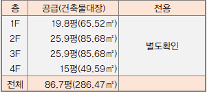 공급 286.47㎡ 87평 / 전용 286.47㎡ 87평 (전용률 100%) 평