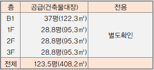 공급 408.2㎡ 123평 / 전용 408.2㎡ 123평 (전용률 100%) 평