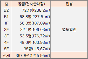 | 지2층 | 기타제2종근린생활시설 | 기계식주차장,펌프실,정화조 | 238.2㎡ 72.06평 |
