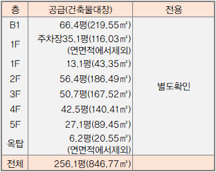 공급 983.35㎡ 297평 / 전용 846.77㎡ 256평 (전용률 86%) 평