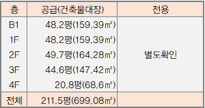 공급 699.08㎡ 211평 / 전용 699.08㎡ 211평 (전용률 100%) 평